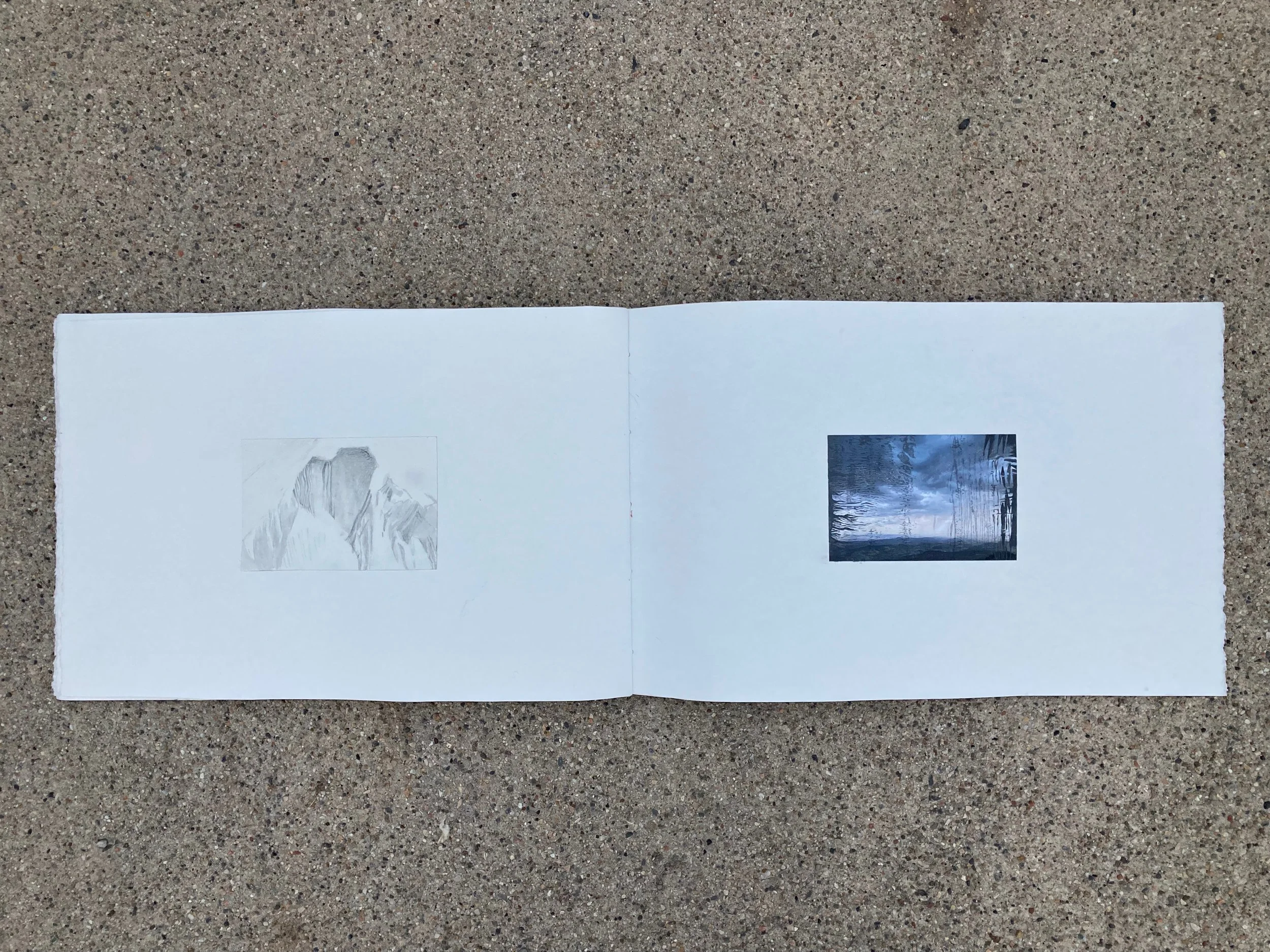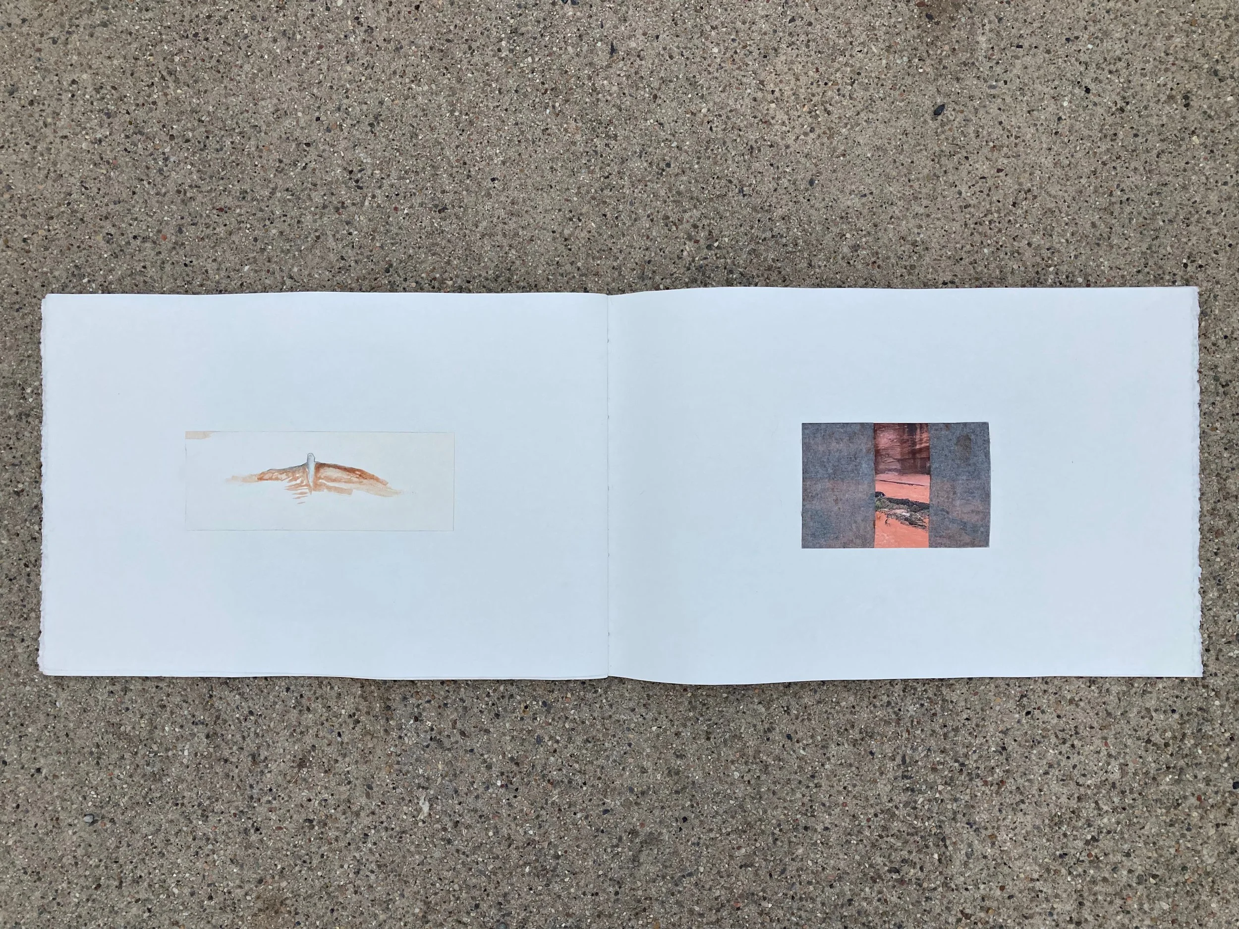 The intention behind A Seeing Land was to put images next to each other which I felt were related in particular ways but which would never appear to be related outside of my juxtaposition. And I wanted to do it without questioning myself, without judging myself. I put virgas next to desert varnish. I put photos of flash floods next to drawings in which the selfsame mud is used. I put observed renderings next to invented horizons. As if to say: “There is a line that connects all these things.” It’s not the only line that connects these things. It’s not an ultimate ordering. But it’s MY ordering. It’s the way I see the world. It’s what I have to say about a particular place, my home, the Colorado Plateau.